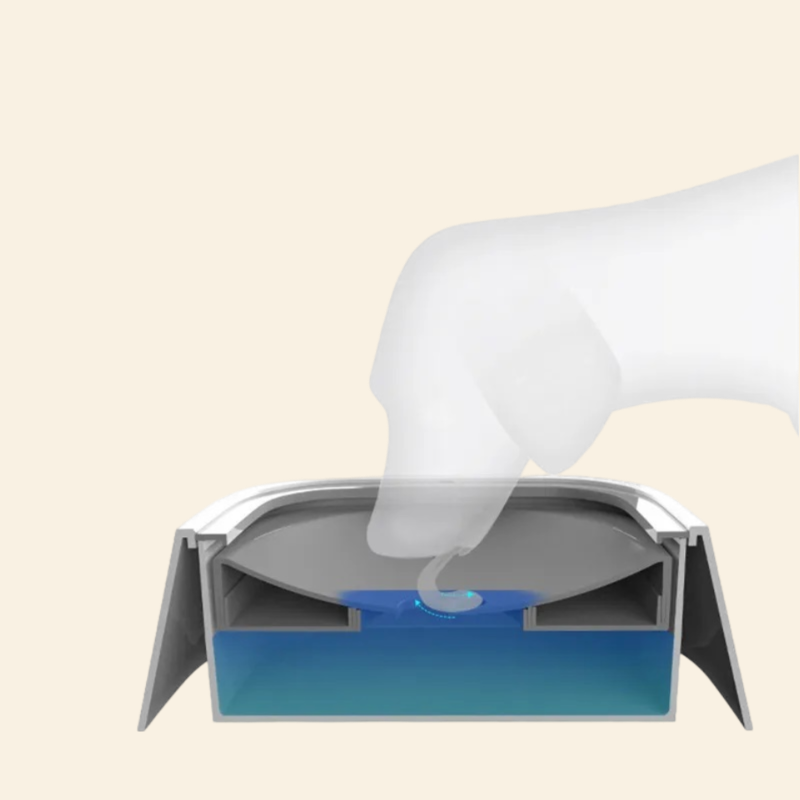 Unser innovativer Wassernapf für Haustiere verfügt über spezielle Teller und Wasserüberlauflöcher, die geschickt gestaltet sind, um den Mund Ihres Haustiers angenehm trocken und frei von unschönen Flecken zu halten.